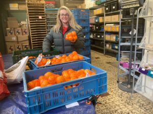 Marina en Boy kwamen namens Mondial Movers mandarijnen en roomboter brengen voor de kerstuitgifte van de voedselbank